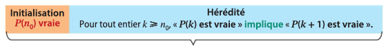 - étape 2 (hérédité) : pour tout entier , « est vraie » implique « est vraie » ;
