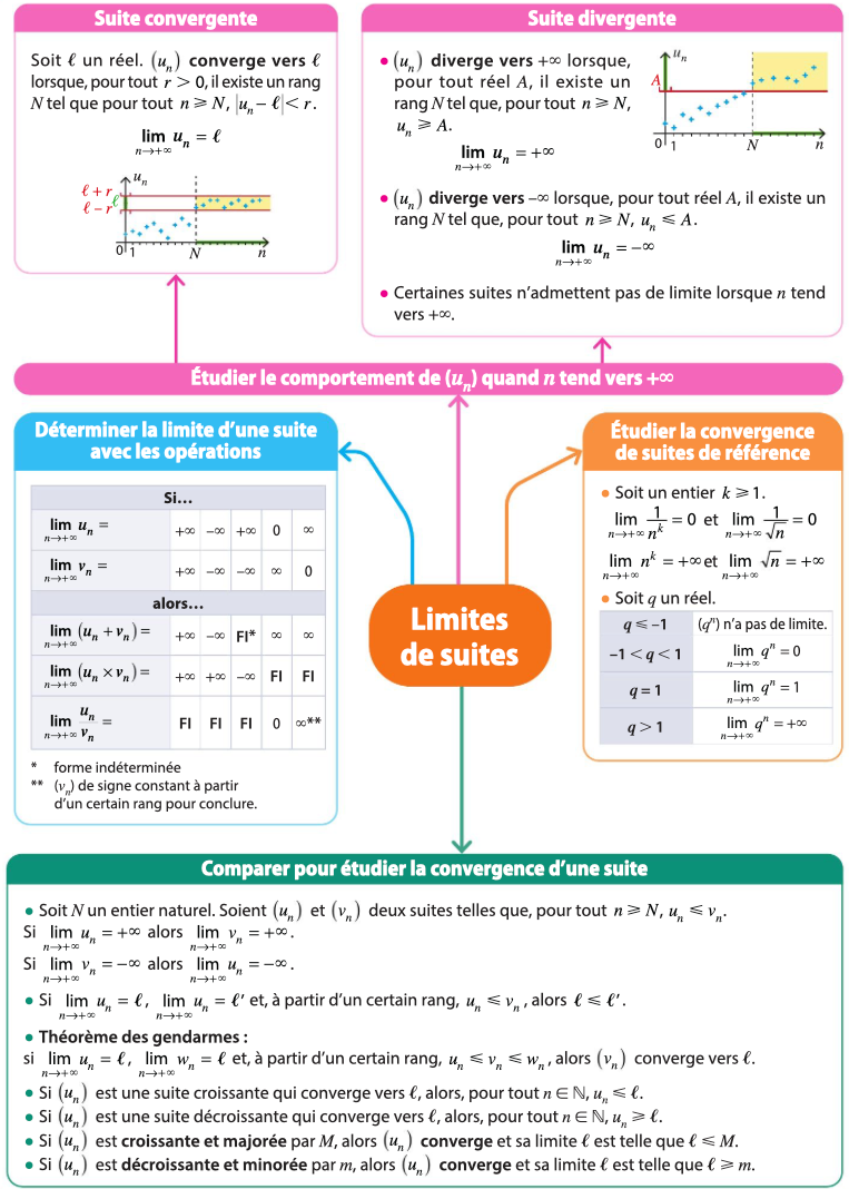 Limites de suitesVous trouverez ici les cours du chapitre 2 : Limites de suites.Définition des limites Limites et opérations Limites et comparaison Suites géométriques, suites monotonesCarte mentale du chapitre
