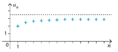 Par exemple, pour la suite représentée ci-dessous, (en pointillé) est un majorant mais n’est pas la limite.